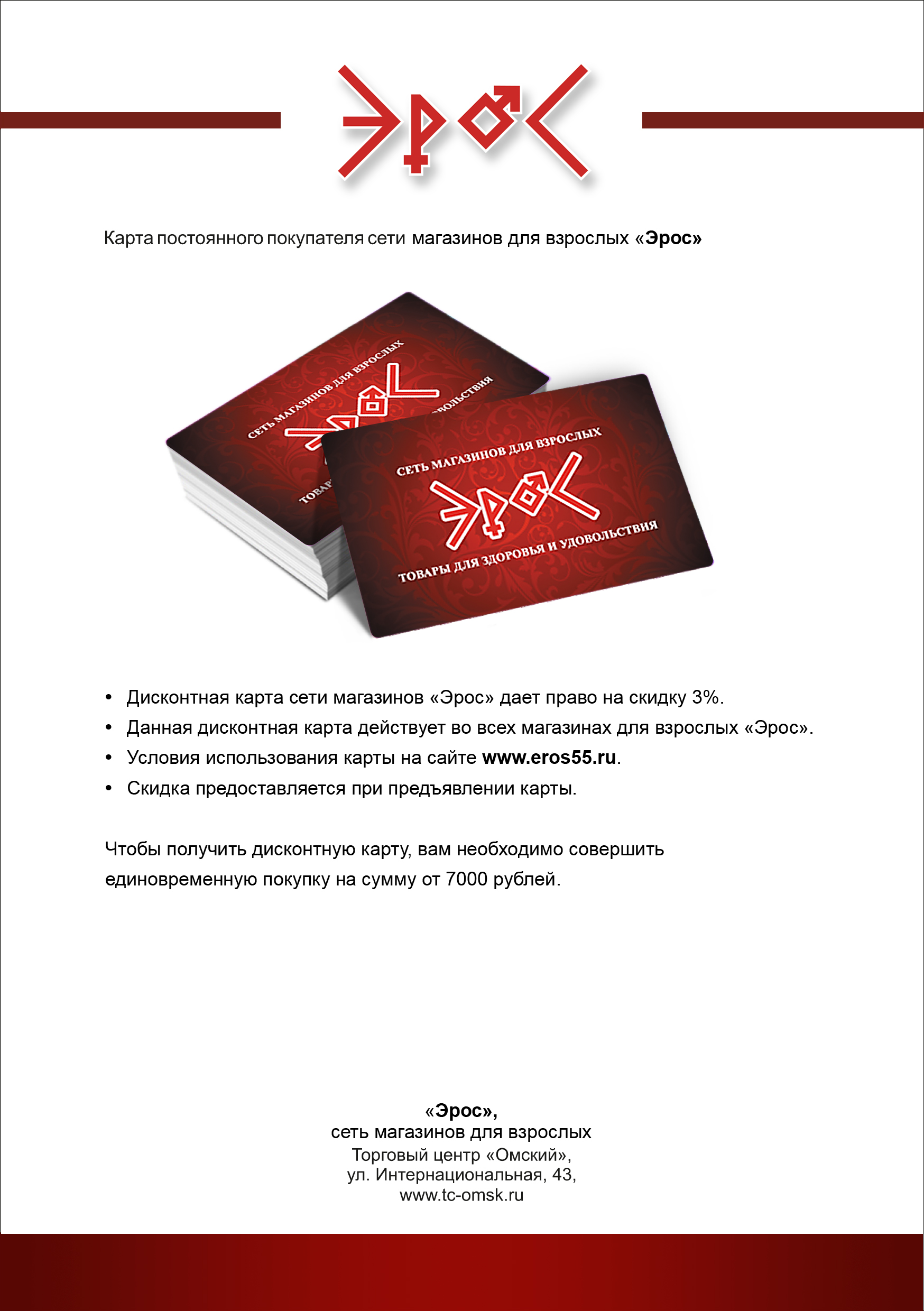 ![]() | Карта постоянного покупателя сети магазинов «Эрос» | |