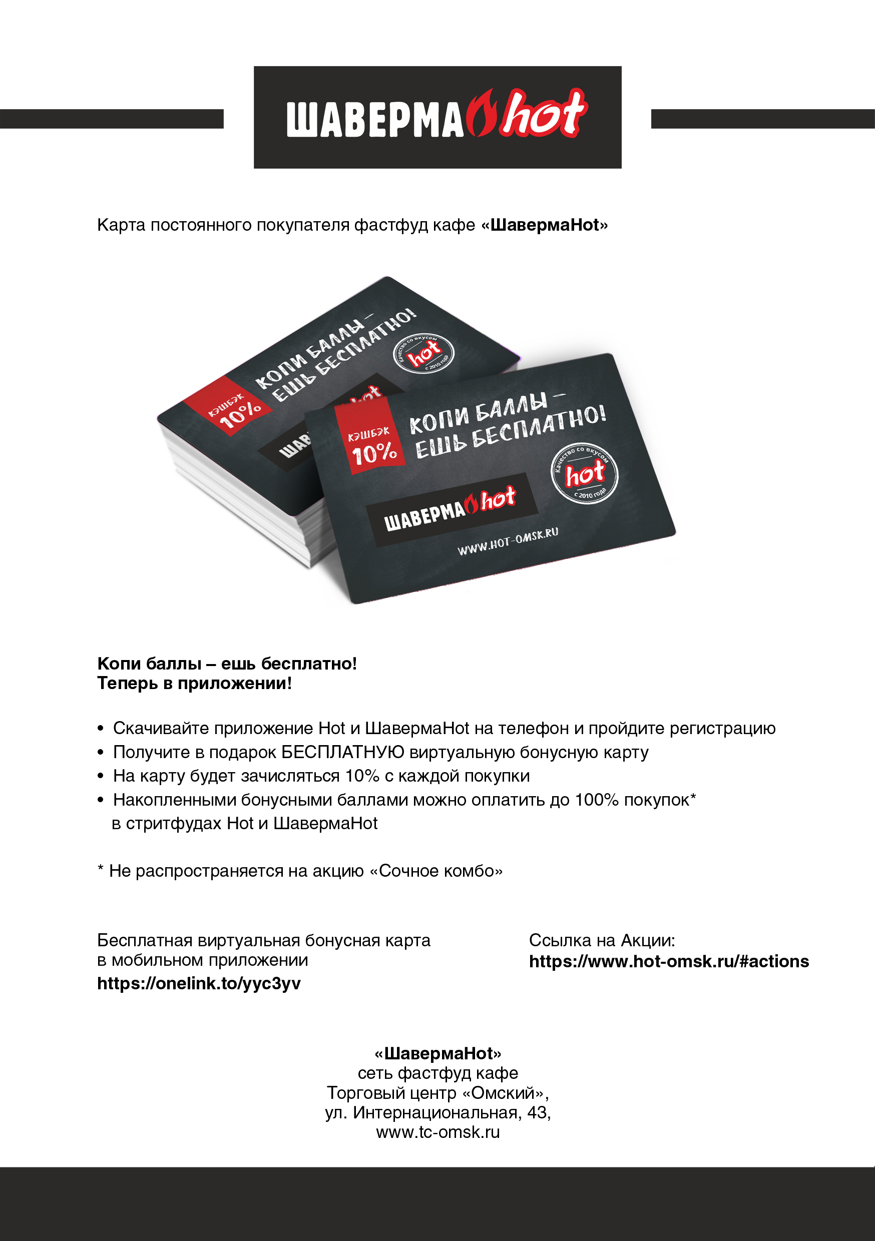 ![]() | Карта постоянного покупателя сети фастфуд кафе «ШавермаHot» | |