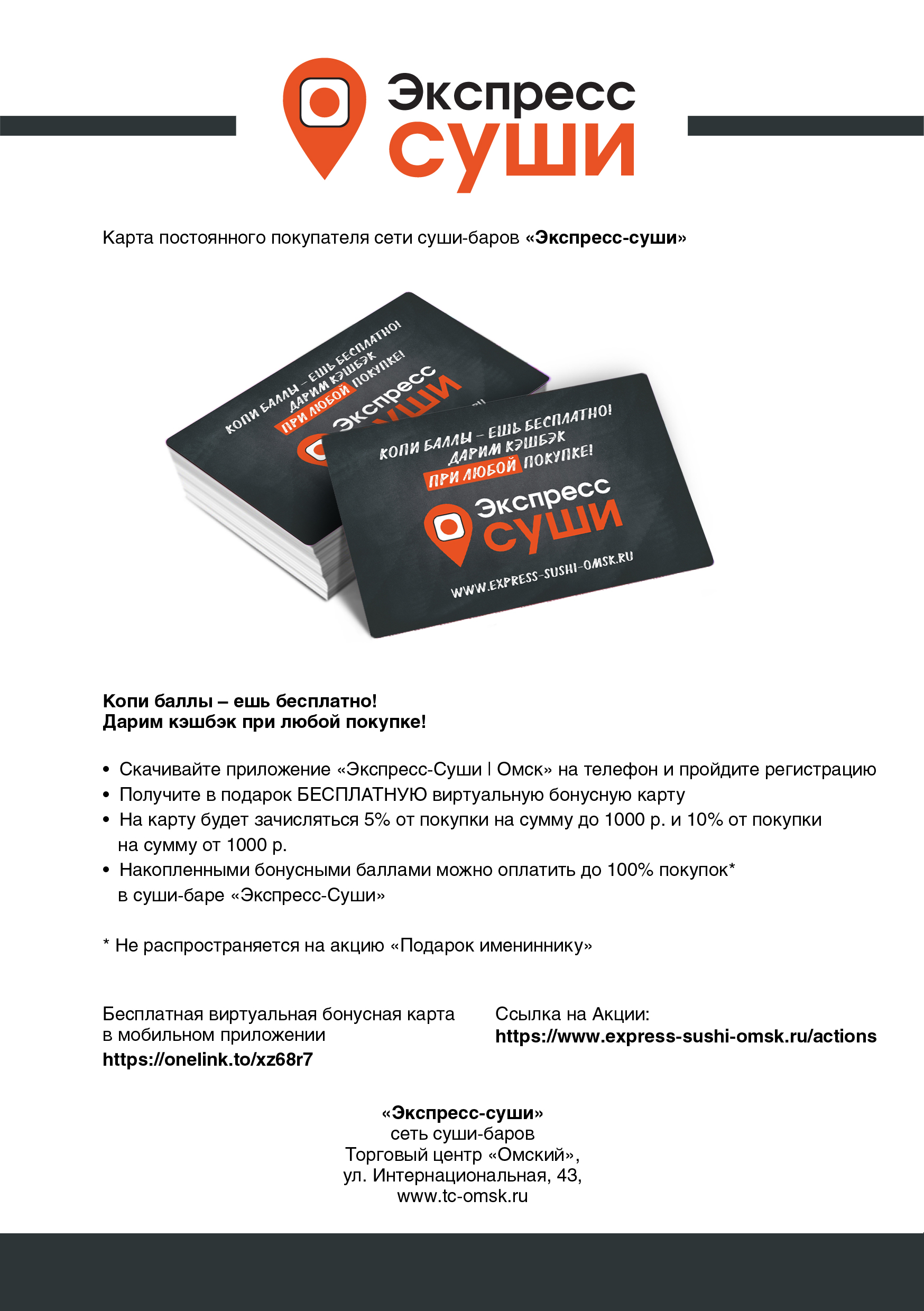 ![]() | Карта постоянного покупателя сети суши-баров «Экспресс-Суши» | |
