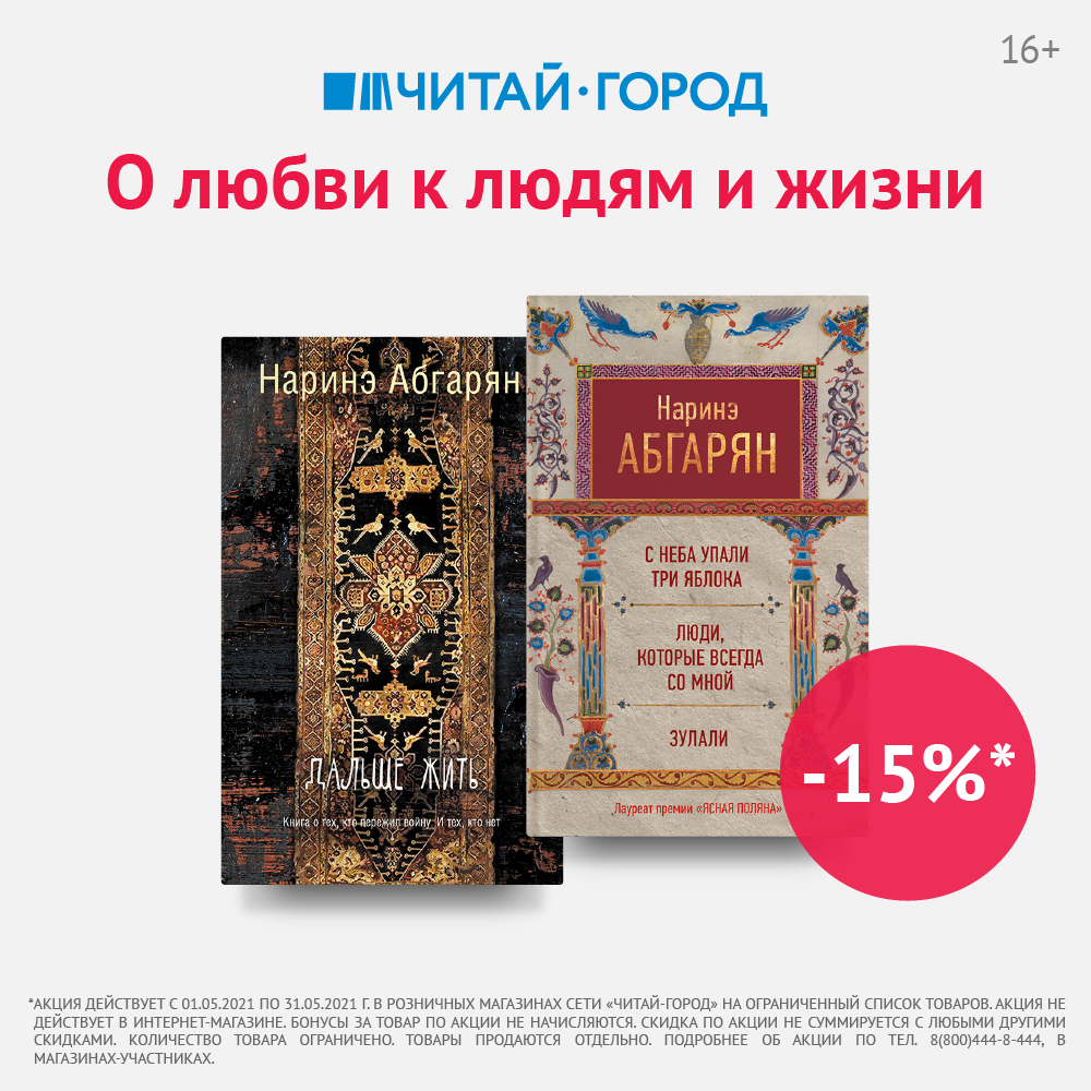 С 1 по 31 мая в магазине"Читай-город" проходит акция на книги Наринэ Абгарян. Мы предоставляем скидку 15% при покупке на выборочный ассортимент книг автора. В своих книгах Наринэ рассказывает трогательные и иногда грустные истории. И в каждой из них автор находит юмор и светлые моменты. *Подробнее о правилах проведения акции можно узнать по ссылке: О любви к людям и жизни (chitai-gorod.ru) или у продавцов-консультантов.