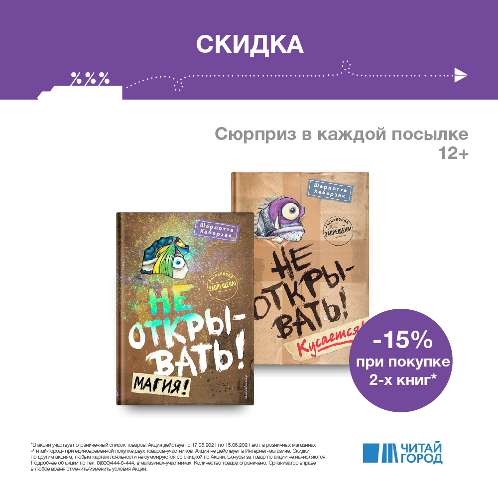 С 17 мая по 15 июня в магазине "Читай-город" проходит акция на серию книг «Таинственная посылка» издательства «Эксмо». При покупке каждых двух книг из этой серии получаете скидку в размере 15%. Участвуют только книги серии «Таинственная посылка». *Подробнее о правилах проведения можно узнать по ссылке: Сюрприз в каждой посылке (chitai-gorod.ru) или у продавцов-консультантов.