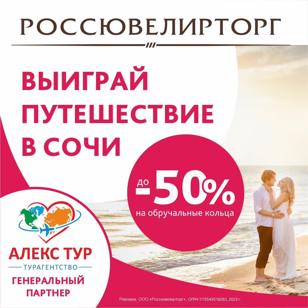 В разгар свадебного сезона компания Россювелирторг радует омичей скидками до -50% на обручальные кольца и запускает розыгрыш путешествия в Сочи на двоих.