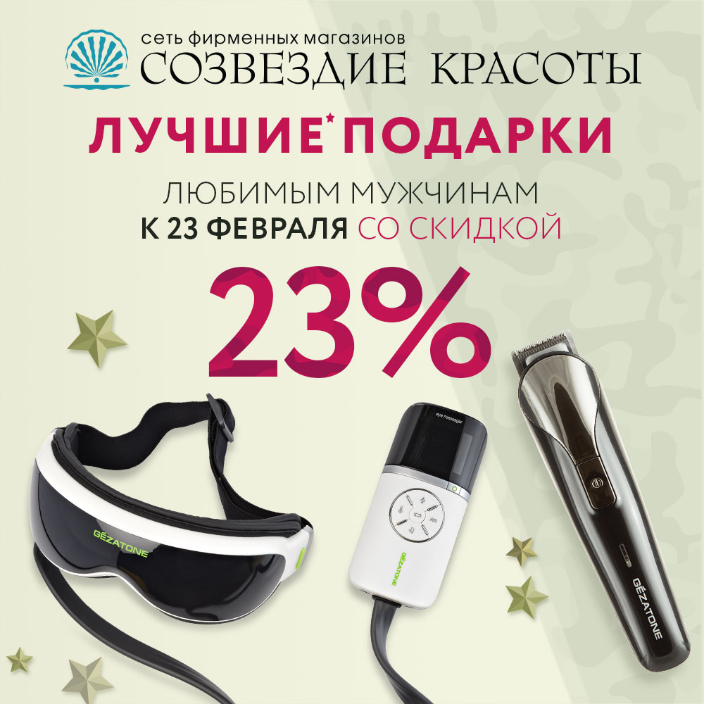 Что подарить мужчине на самый брутальный праздник? В этом году мы решили облегчить жизнь тысячам женщин и спросить у самих мужчин, что бы им хотелось получить вместо традиционного джентельменского набора из носков, дезодоранта и пены для бритья. По результатам опроса мужской половины «Созвездия Красоты» и наших постоянных клиентов-мужчин мы выбрали 23 подарка мечты и сделали на них скидку 23%. Предложение действует с 15 по 23 февраля. Успевайте воспользоваться!