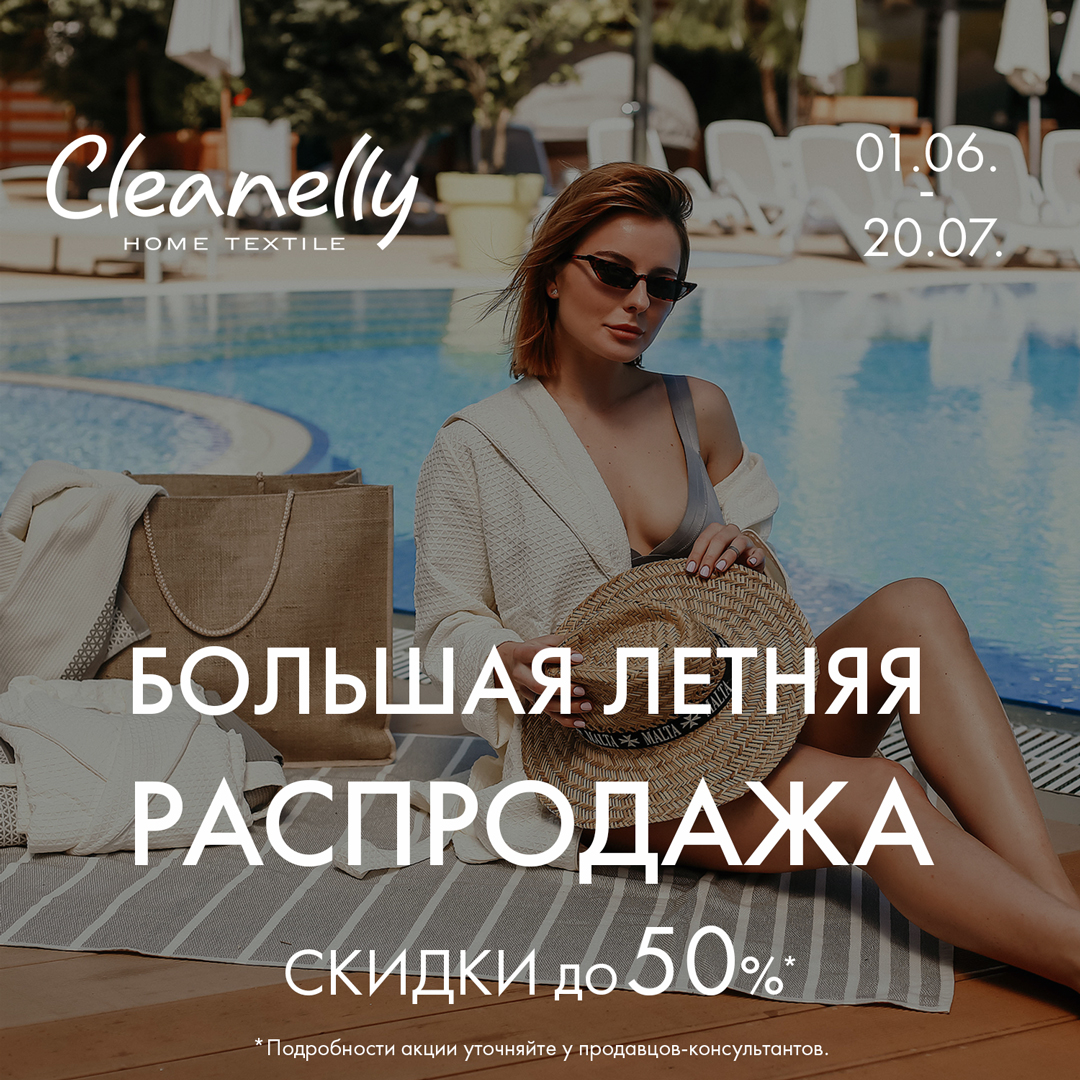 В период с 1 июня по 20 июля дарим скидки до 50% на вафельные и махровые халаты, полотенца, постельное белье, одеяла и подушки*. Воспользуйтесь случаем и порадуйте себя новым домашним текстилем, а близких – подарками от Cleanelly!