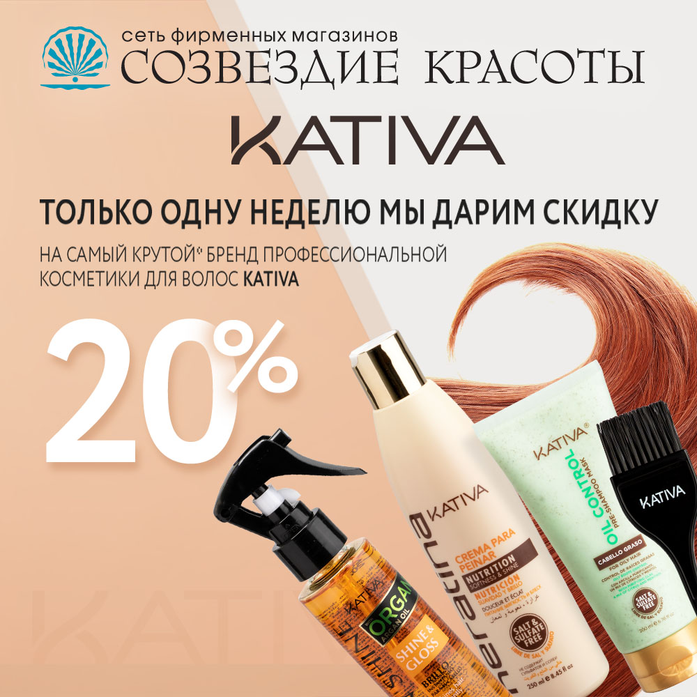 «Созвездие Красоты» и профессиональная косметика для волос Kativa дарят вам скидку 20% на всю продукцию бренда!