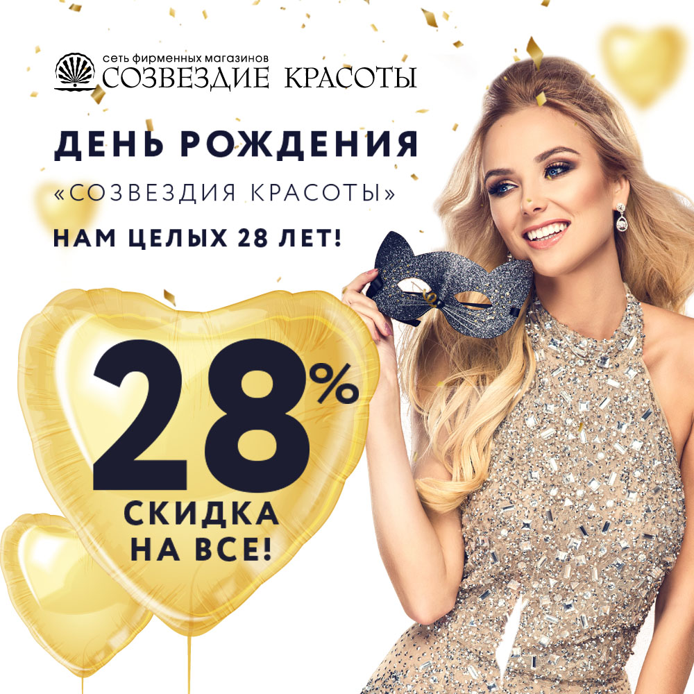 В честь дня рождения "Созвездия Красоты" дарим скидку 28% каждому! Сделайте заказ прямо сейчас и при оплате введите промокод BIRTHDAY28.