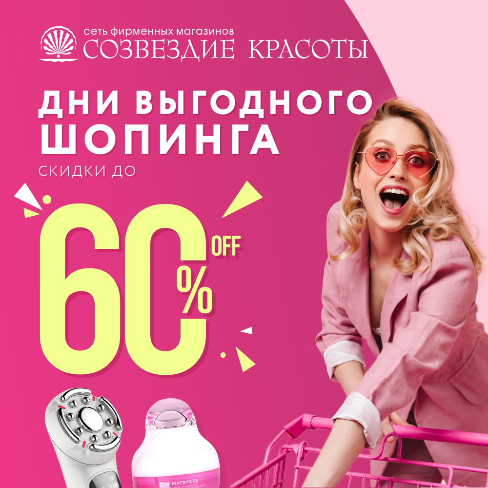 Всем, кто любит сочетать пользу с максимумом удовольствия и выгоды! Настал ваш час! Скидки до 60% на новинки лета 2021, топовые бьюти-гаджеты, домашние массажеры, популярную профессиональную косметику от «Созвездия красоты». Все это доступно только для вас и только сейчас – выгоднее уже не будет. Предложение действует с 16 по 29 сентября 2021 года. При участии в акции операции по дисконтной программе не ограничены. *Подробности уточняйте у продавцов-консультантов.