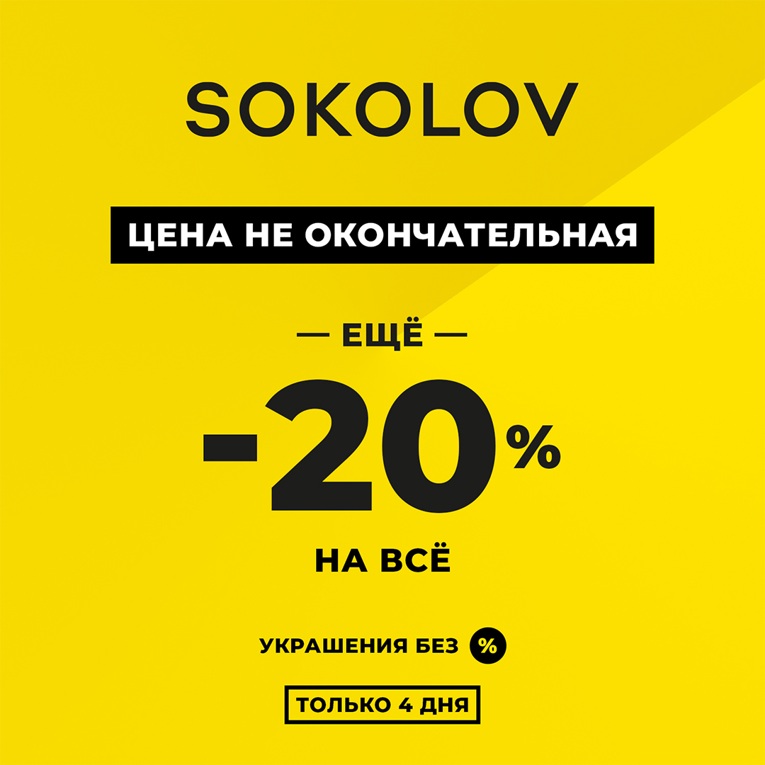 В "SOKOLOV" только 4 дня — дополнительная скидка 20% к РАСПРОДАЖЕ!