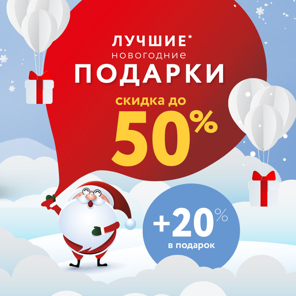 С 13.12.18 по 08.01.19 делайте покупки со скидкой до 50% и получайте двойные бонусы на карту.