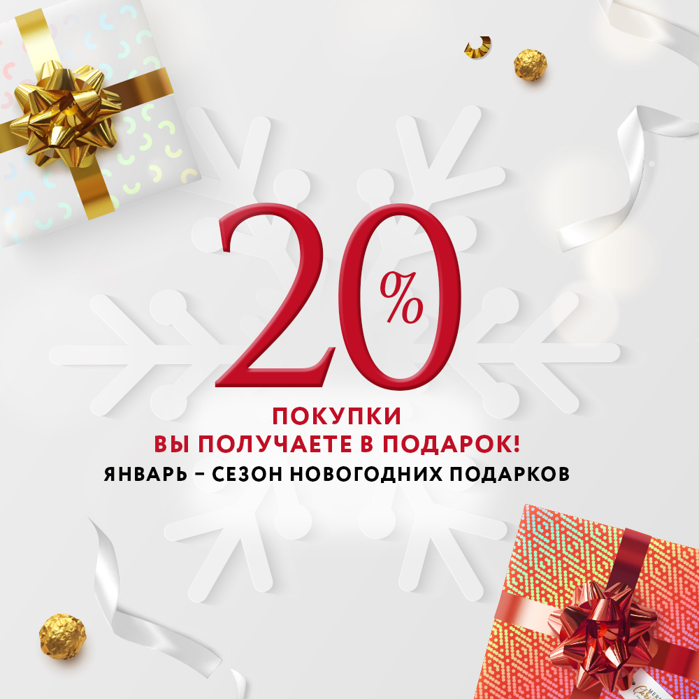 Весь январь дарим 20% от стоимости покупки — теперь никакие предпраздничные хлопоты не отвлекут вас от приятного шоппинга