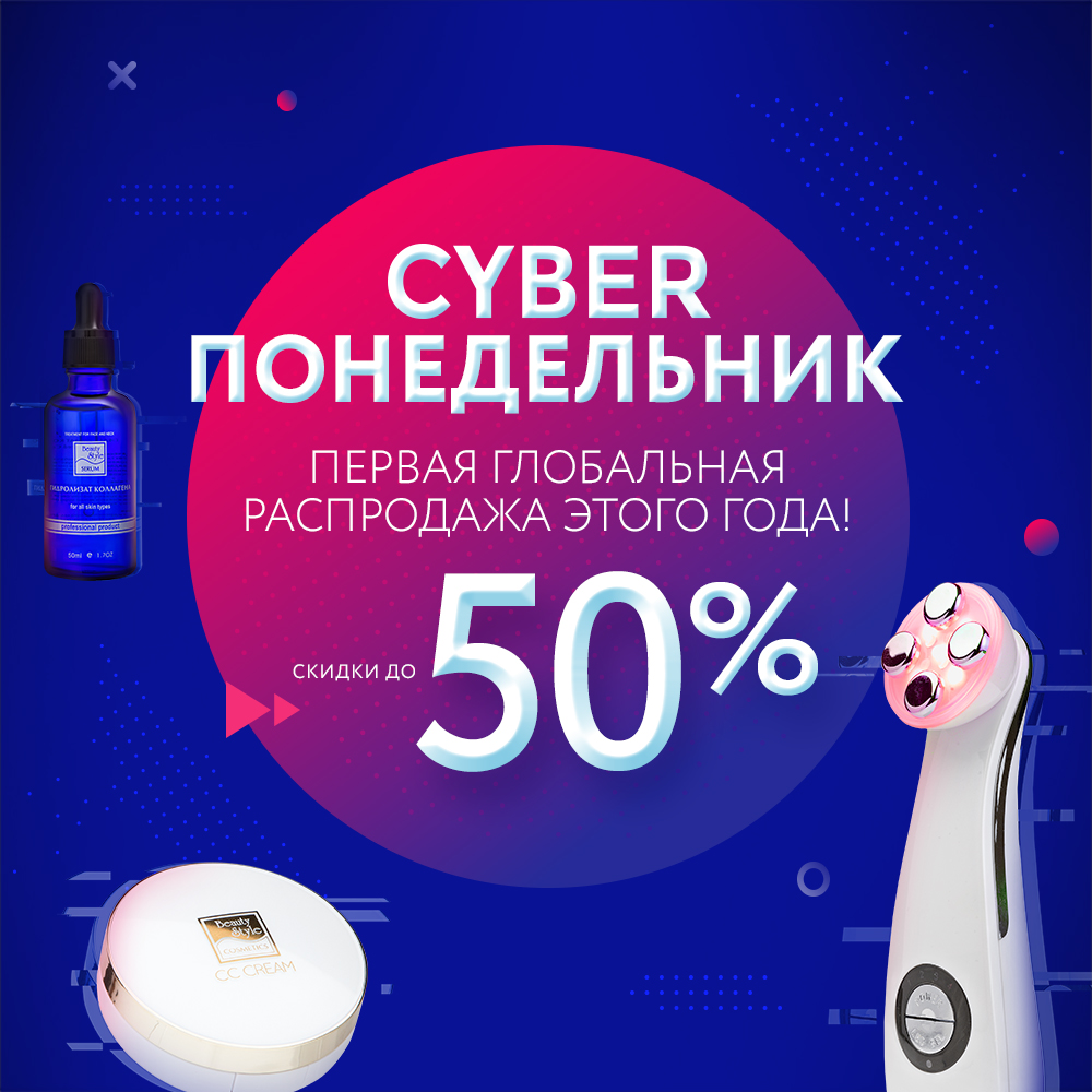 «Созвездии Красоты» объявляет КИБЕРПОНЕДЕЛЬНИК! С 28 по 30 января пройдет стартовая глобальная распродажа 2019 года. Успейте воспользоваться скидкой 50% на выборочный ассортимент аппаратов и косметики.
