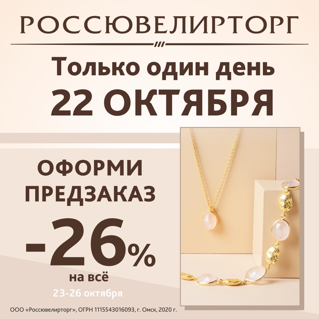 И только один день, 22 октября – можно сделать предзаказ на сайте и все украшения будут уже со скидками! Будь первым: бронируй украшения со скидкой -26% на все и до -62% на бриллианты.