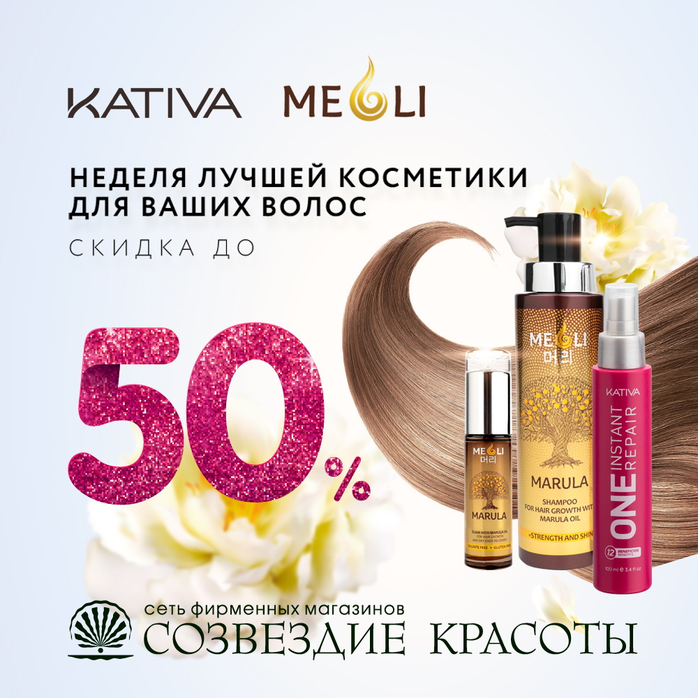 Профессиональный уход KATIVA и MEOLI, брендовые гаджеты, инновационные расчески и многое другое со скидками до 50%. Marula MEOLI Серия бессульфатной косметики для волос с непревзойденным маслом марулы. По содержанию питательных веществ оно оставляет далеко позади все известные в косметологии масла, при этом нисколько не утяжеляет волосы, не добавляет им жирности. Продукты также содержат богатейший коктейль из натуральных активных компонентов, которые ускоряют рост волос, улучшают их качество, решают проблемы кожи головы. KATIVA Профессиональная косметика для волос, разработанная с учетом строения и возможных проблем любого типа. Линии с маслом арганы, кератином, коллагеном, с омега комплексом и биотином, останавливающим выпадение – подарить своим волосам индивидуальный уход очень просто. Без сульфатов, солей и других агрессивных компонентов.