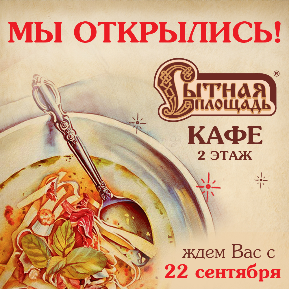 С 22 сентября кафе “Сытная площадь”, 2 этаж, возобновляет свою работу.