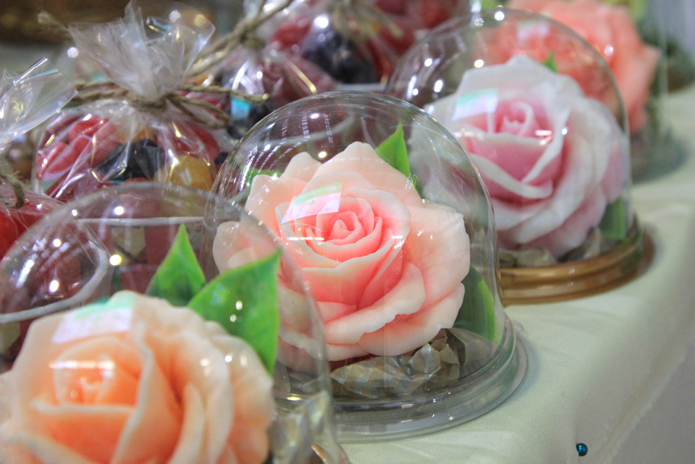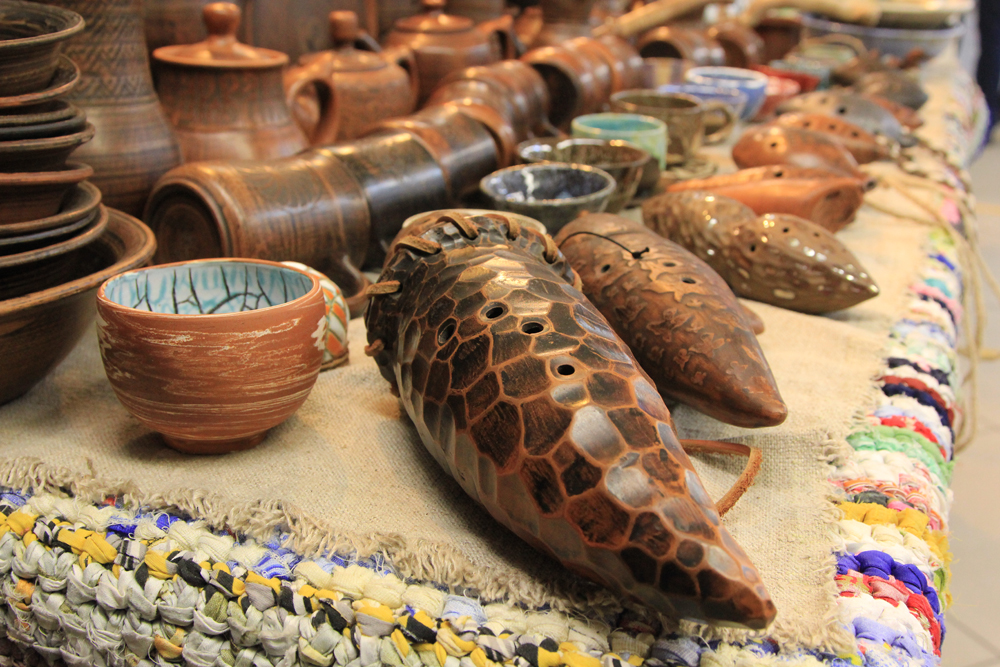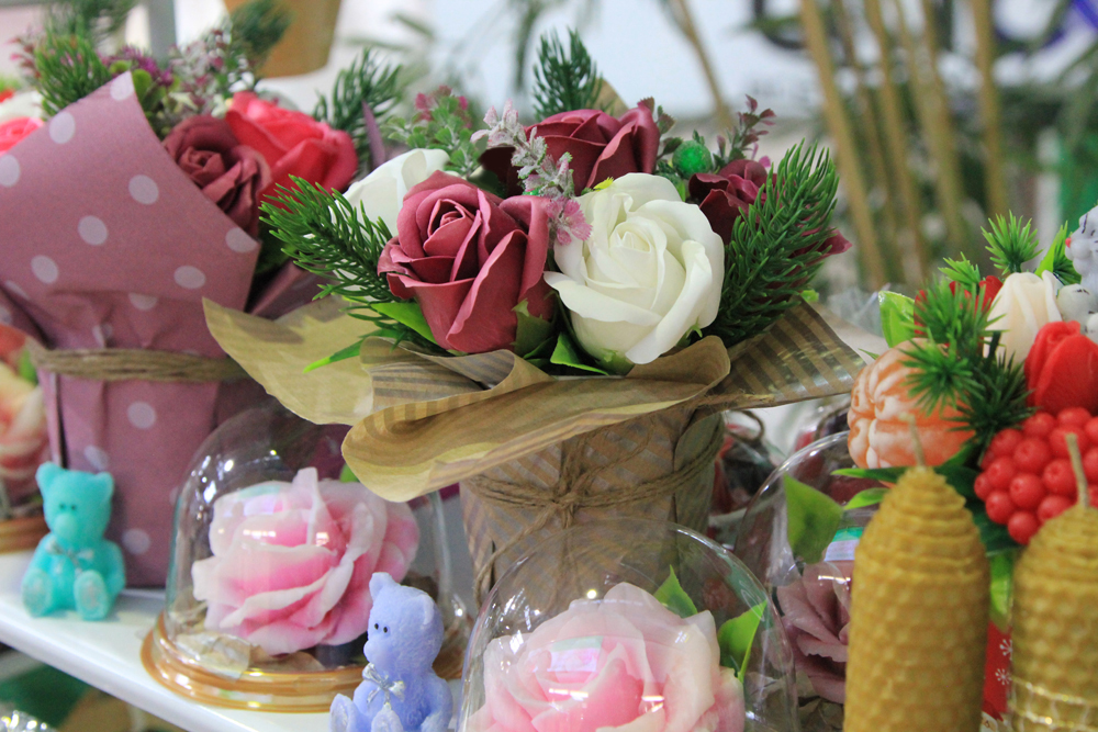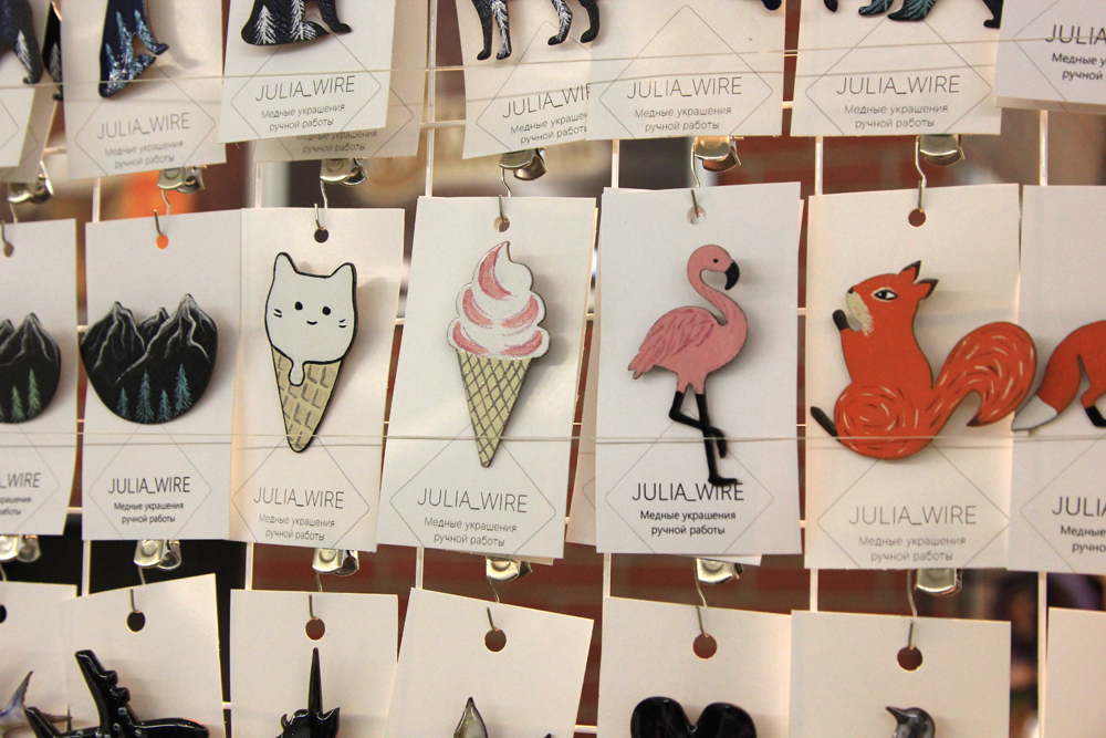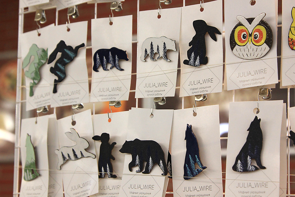 На 1 этаже ТЦ “Омский” проходит продажа одежды, украшений, изделий из кожи, посуды, натуральной косметики, мыла, свечей и сладостей, выполненных мастерами-ремесленниками.