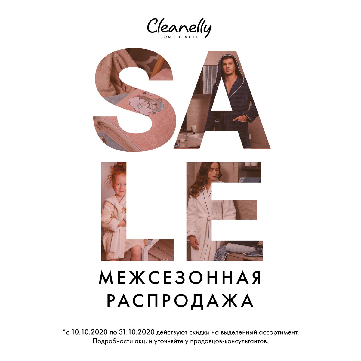 Межсезонная распродажа в Cleanelly — это все, что вам нужно этой осенью! С 10 по 31 октября получите скидку до 40% на домашний текстиль: халаты, полотенца, покрывала, изделия для детей, пледы, а также многие другие товары для домашнего уюта. Ждем вас за покупками в нашем фирменном магазине!