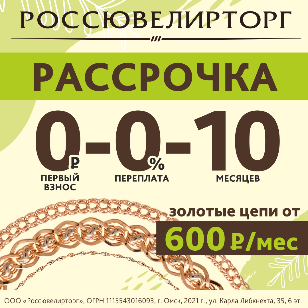 Подробнее о вариантах кредита и рассрочки можно узнать на сайте zoloto55.ru *Подробности уточняйте у продавцов-консультантов.