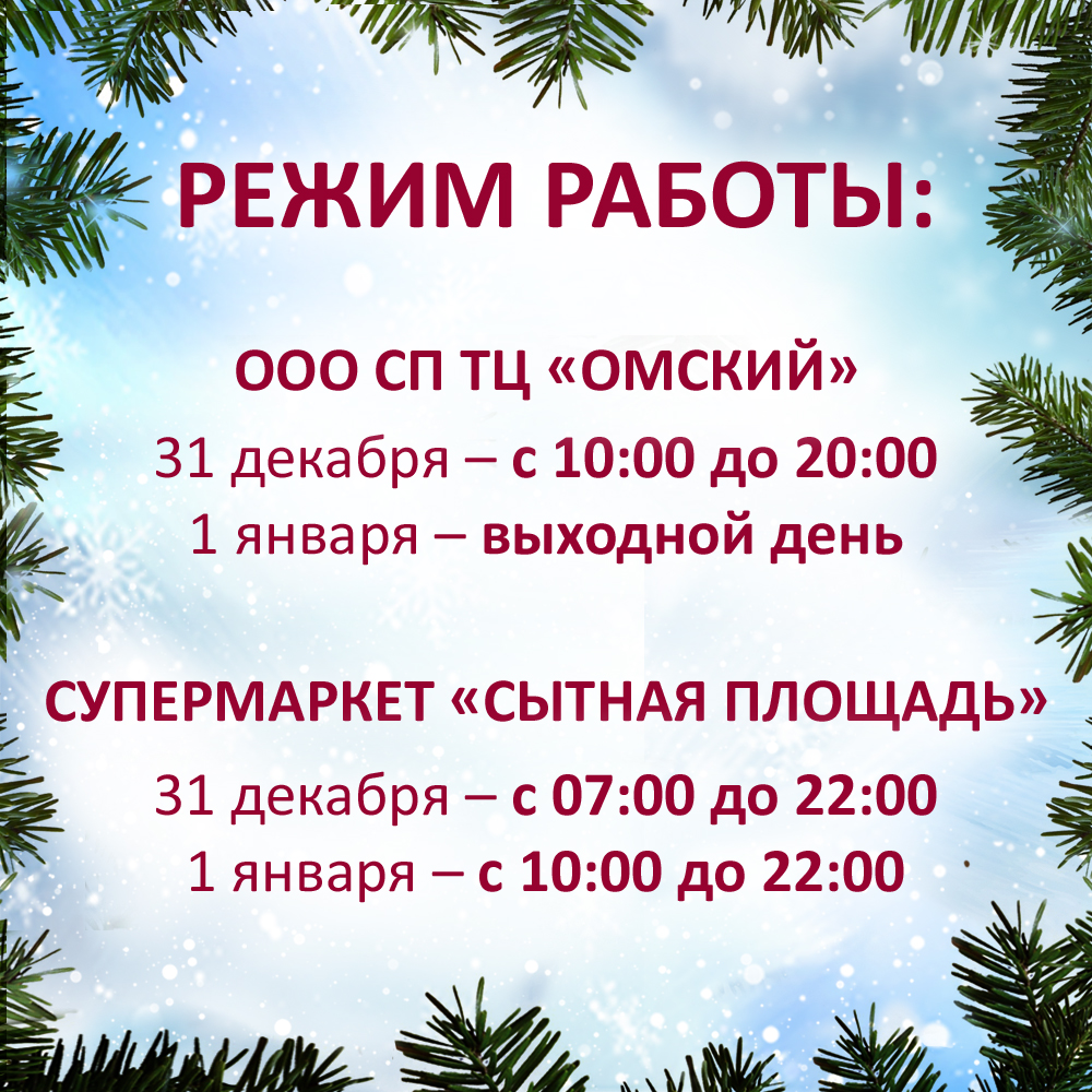 Внимание! Торговый центр "Омский" работает в соответствии с праздничным режимом: