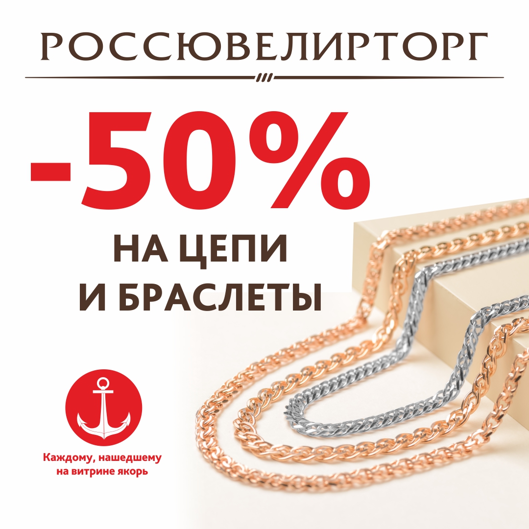 Найдите красный якорь на витринах Россювелирторг и заберите изделие за пол цены. Или заказывайте в интернет-магазине zoloto55.ru с самовывозом из салона или доставкой на дом!