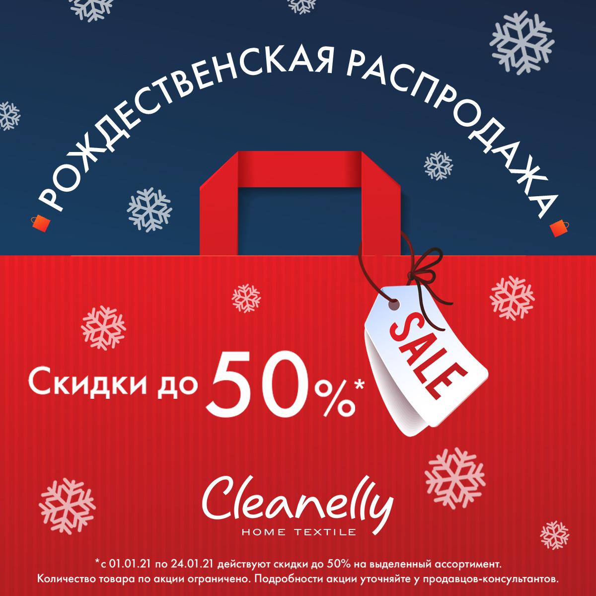 С наступлением нового года в фирменном магазине домашнего текстиля Cleanelly началась «Рождественская распродажа»! Скидки до -50% будут действовать с 1 по 24 января!* Большой выбор полотенец и халатов для взрослых, махровые изделия для детей, постельное белье, декоративные покрывала, пледы, подушки и одеяла – все для создания уюта и хорошего настроения! Количество товаров ограничено.