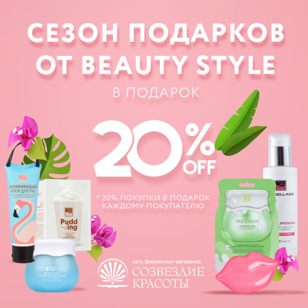 Открываем весенний сезон подарков от BEAUTY STYLE-2020! Скорее выбирайте косметику любимого бренда на сумму 20% стоимости каждой покупки. Количество заказов одним человеком неограниченно!