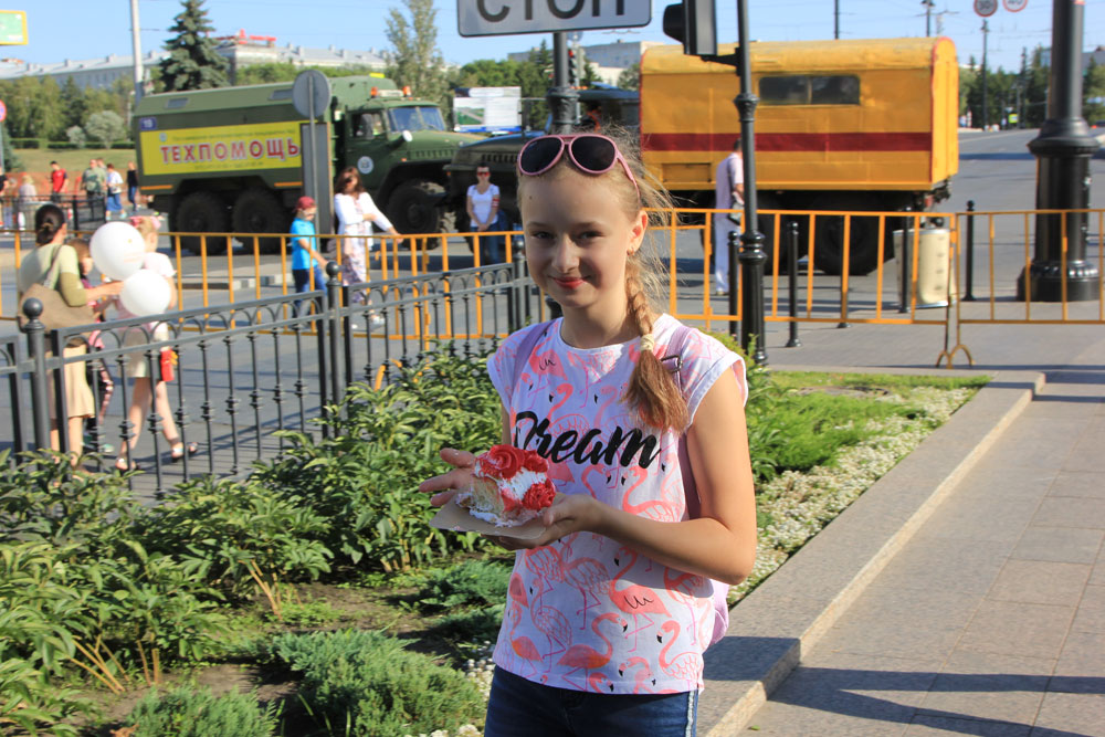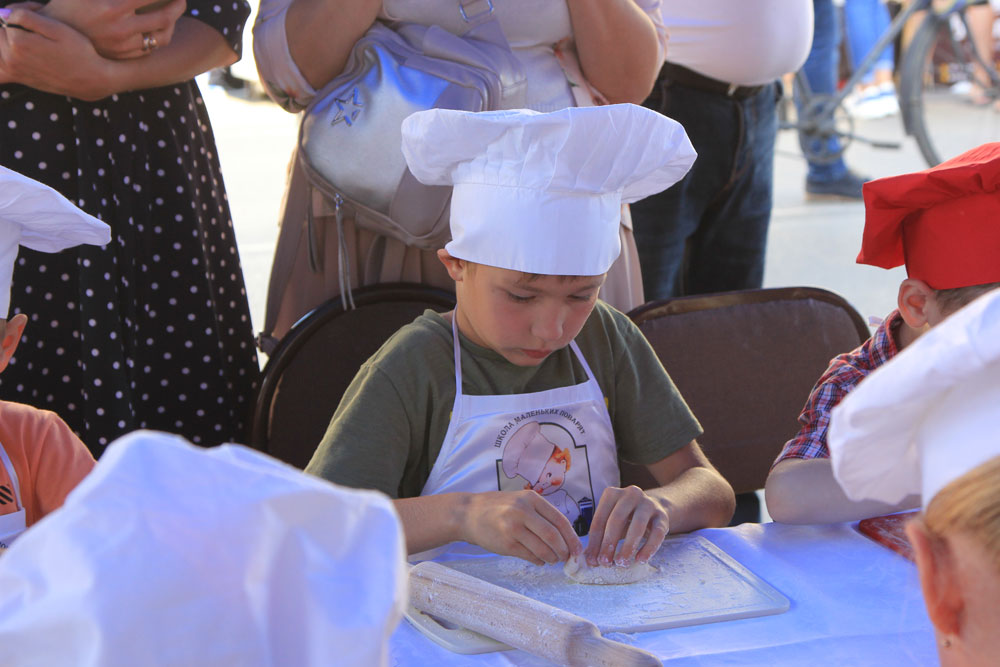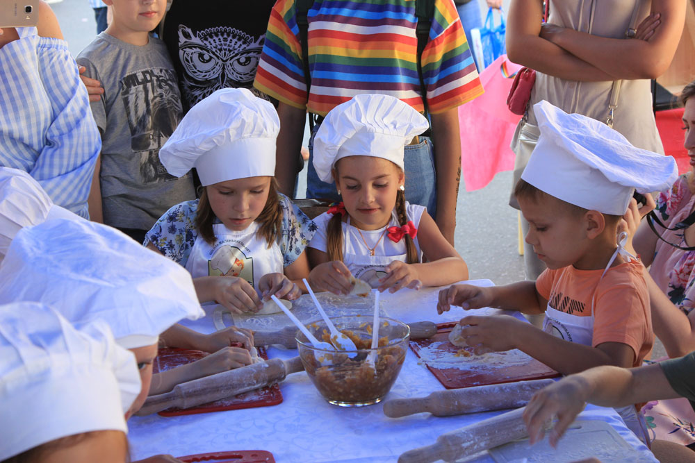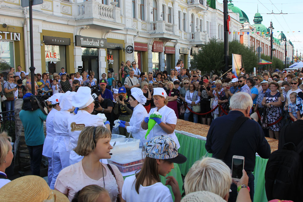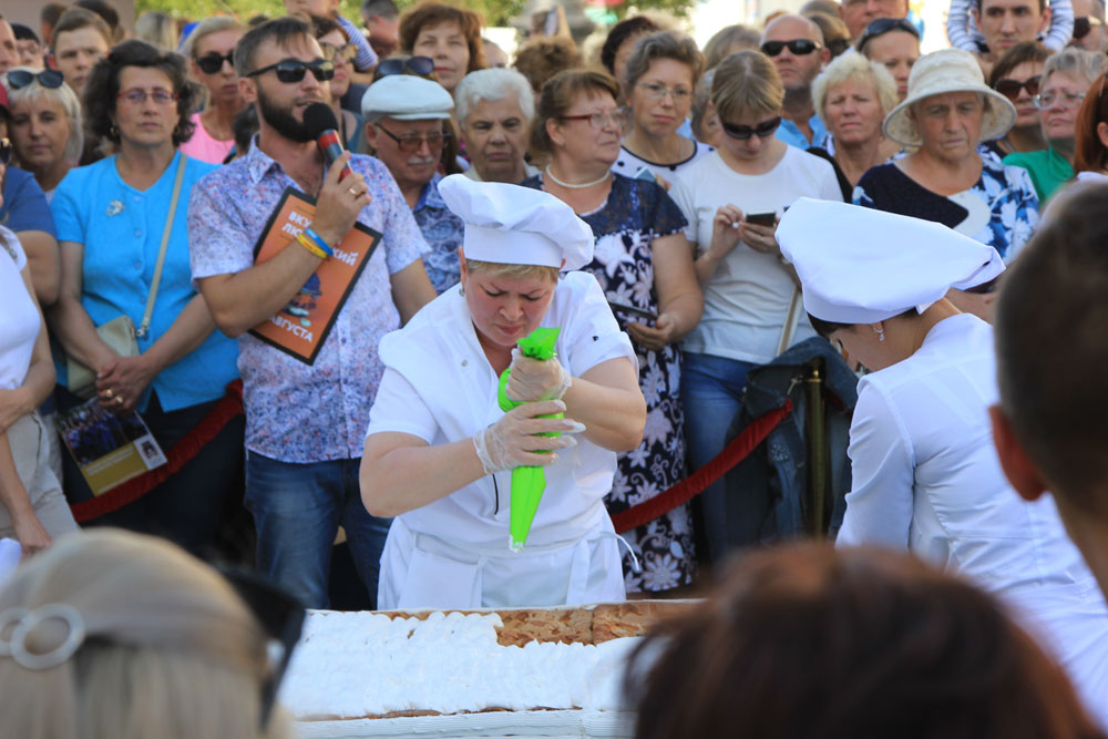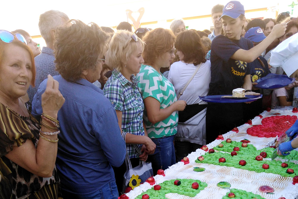 В то же время ресторан быстрого обслуживания "Сытная площадь" принял участие в изготовлении яблочного пирога, размер которого составил 5 метров 72 сантиметра. На пирог ушло 880 яиц, 55 кг яблок, 15 кг муки и 50 кг сахара. Его разрезали на кусочки и продавали всем желающим. Средства от продажи предназначались благотворительному фонду «Радуга», который собирает средства на дорогостоящее лечение детей.