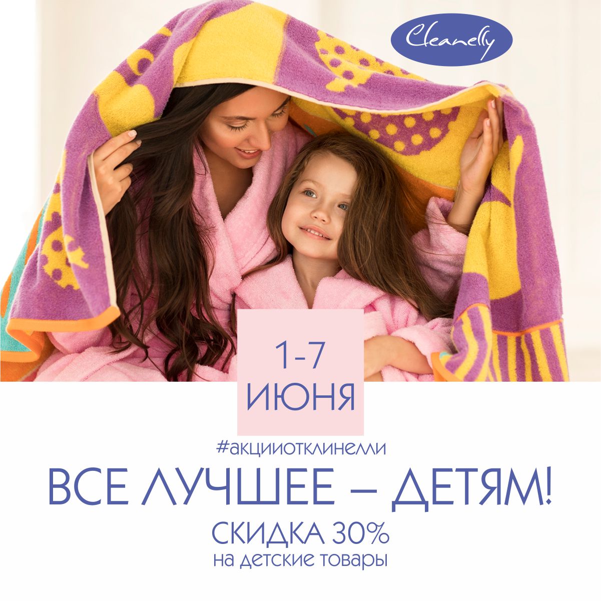 Только с 1-7 июня в магазине Cleanelly вас ждут скидки с выгодой до 30% на детский ассортимент!