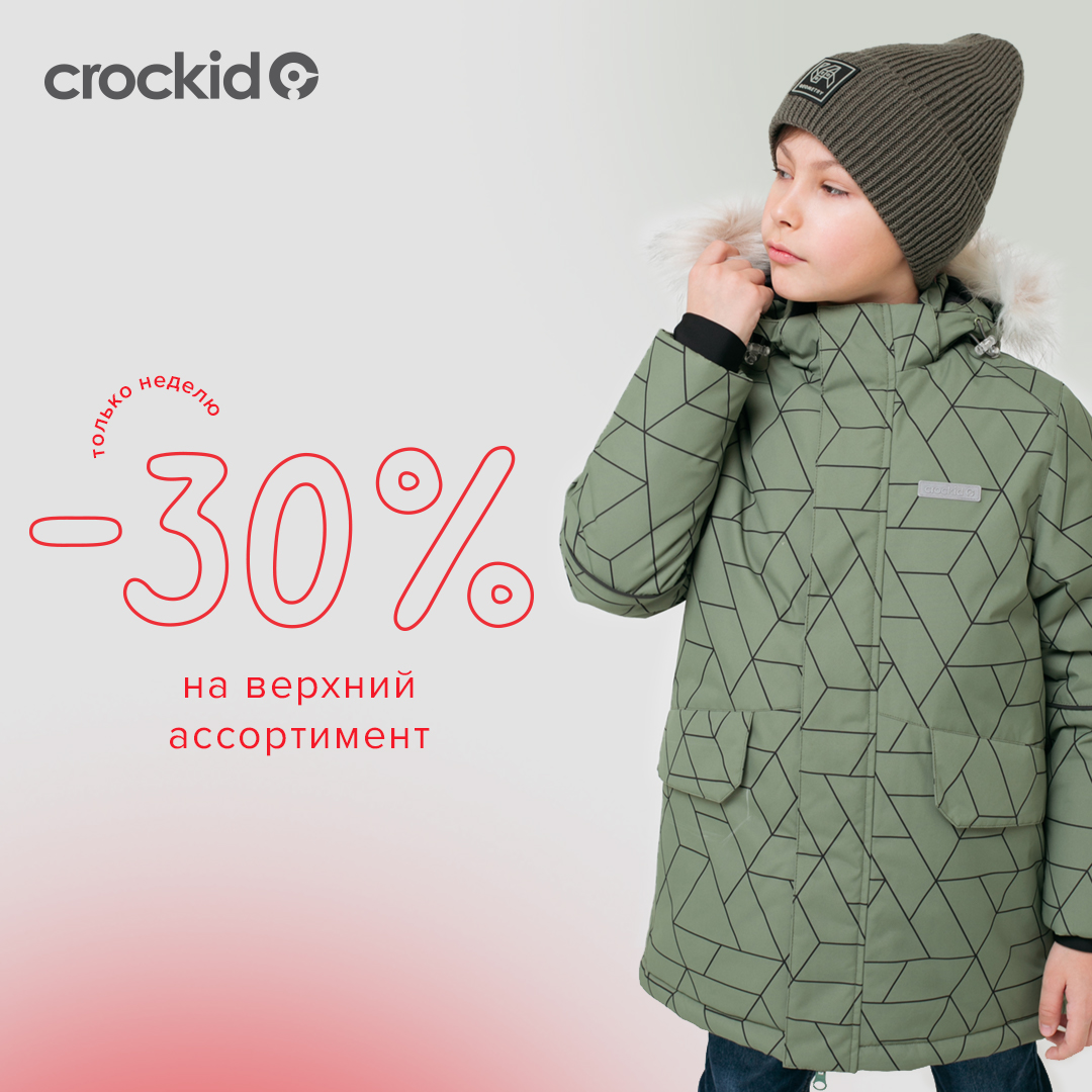 Отличные новости! Crockid дарит скидку 30% на теплые зимние куртки и пальто! Успейте приобрести инновационную верхнюю одежду по самым выгодным ценам!