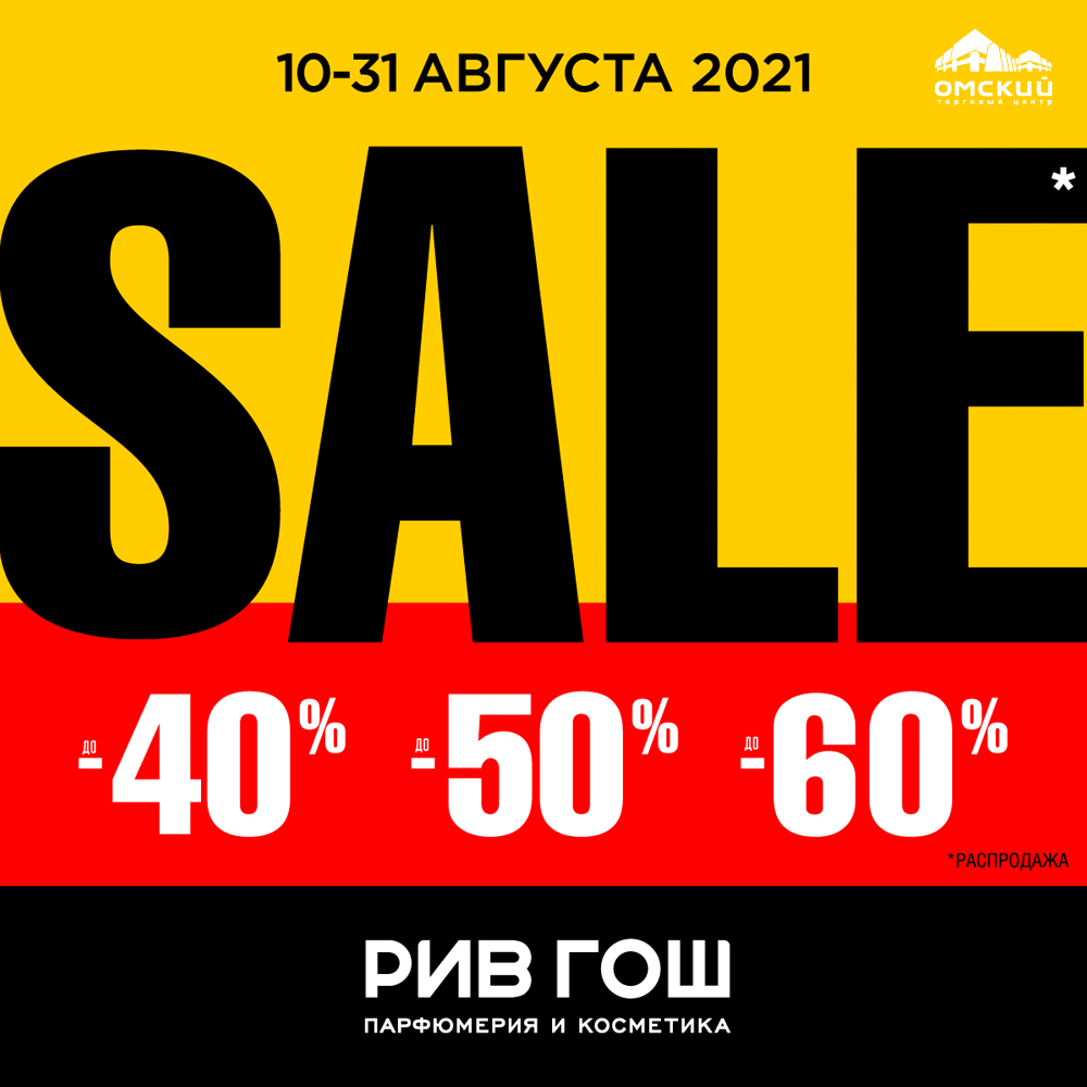 скидки -40%, -50%, -60%! Акция проходит с 10 по 31 августа 2021 года в магазине РИВ ГОШ.