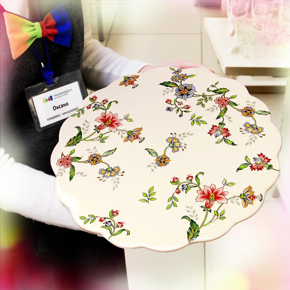 А красивым дополнением к сладкому презенту станет изящный сервиз от Мажордом, который порадует женщину своим качеством и великолепным, изысканным цветочным орнаментом.