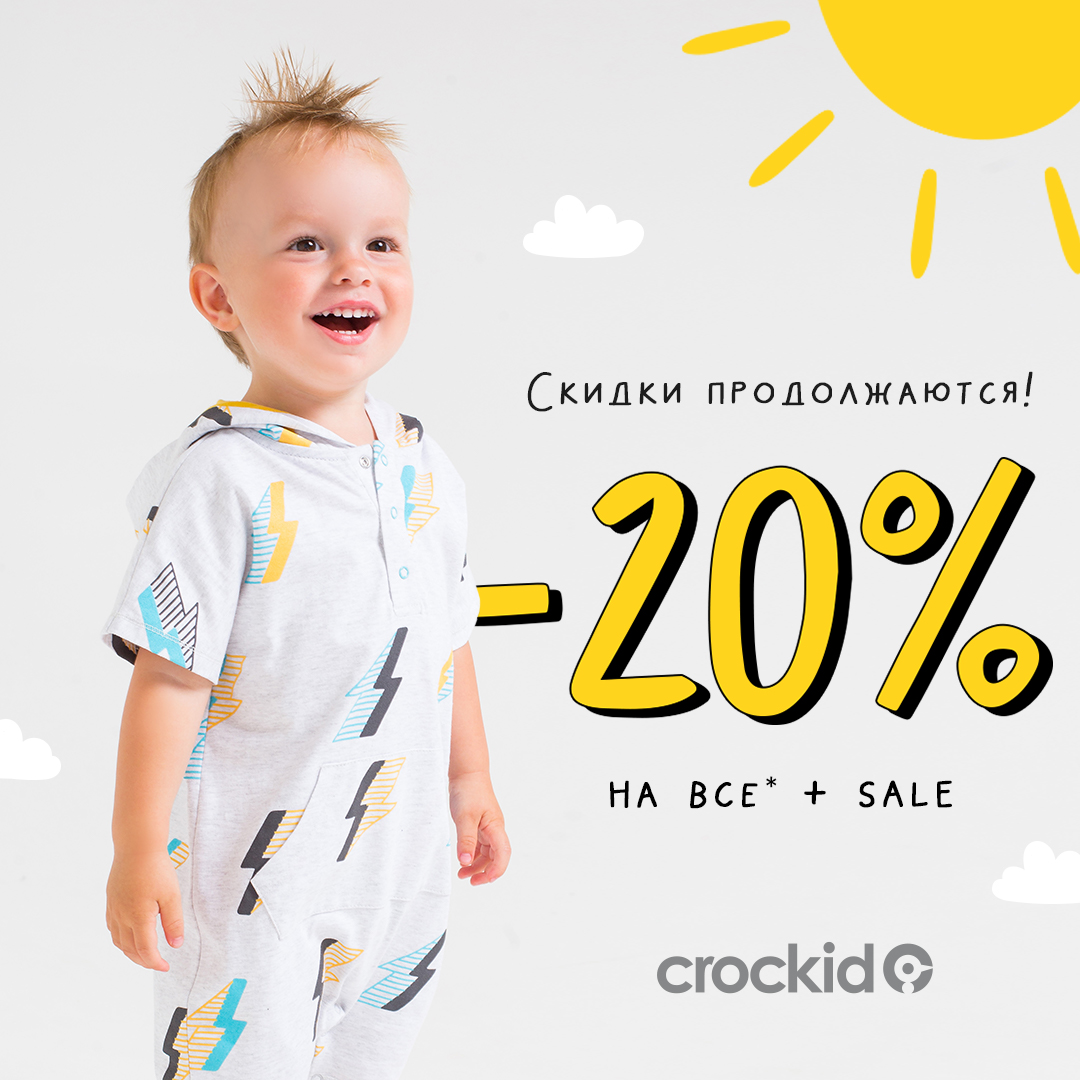*Акция проходит в фирменном магазине Crockid c 23.06.-30.06. Скидка не действует на белье, одежду для дома и колготки сезона ЛЕТО20.
