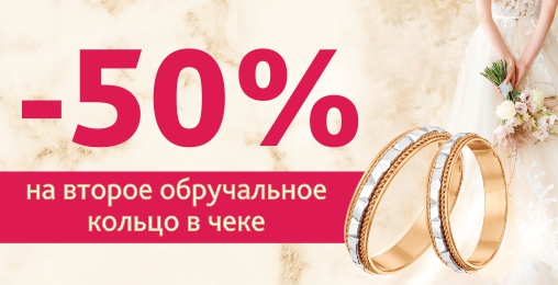 -50% на второе обручальное кольцо в чеке